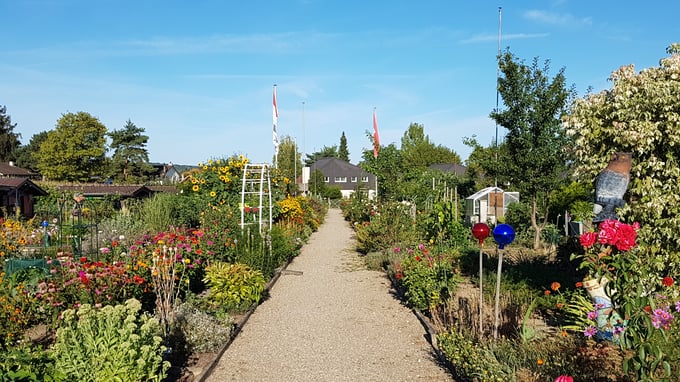 Unser Gartenareal liegt in Binningen auf dem Bruderholz an einer ruhigen Lage. Der nahegelegene Wald und die umliegenden Felder laden zum Verweilen ein.